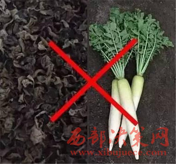 蘿卜+木耳同食會(huì)得皮炎。