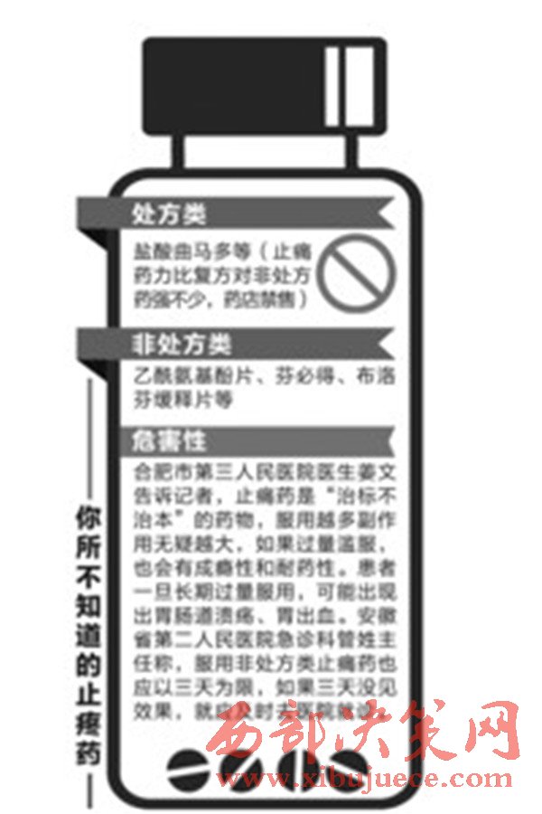 得知小唐曾吃過“鹽酸曲馬多”這一類強(qiáng)效的非麻醉性中樞鎮(zhèn)痛藥,姜文稱,該藥是處方藥,必須由必須憑執(zhí)業(yè)醫(yī)師或執(zhí)業(yè)助理醫(yī)師處方才可調(diào)配、購(gòu)買和使用,藥店禁售。昨天下午,記者走訪了省城東二環(huán)路、巢湖南路、和平路等路段6家藥房,發(fā)現(xiàn)6家藥房均未售鹽酸曲馬多這種處方藥。“你要是偏頭痛,可以服用復(fù)方對(duì)乙酰氨基酚片。”在東二環(huán)路一家藥房,一名女營(yíng)業(yè)員拿出一盒該藥品告訴記者,“這種止痛藥藥性也不差,如果你吃了幾片感覺不管用,可以多吃些,感覺到止痛了停服就行。”和平路一家藥房,營(yíng)業(yè)員稱患者因人而異,既然只是止痛,沒有必要嚴(yán)格按照藥盒上的醫(yī)囑服用。
