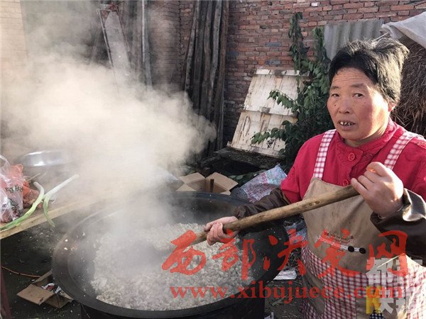 12月4日, 戶縣渭豐鎮(zhèn)元二村,村民們正在興高采烈的烹制著美味大餐,熱鬧非凡,頗有一種過(guò)大年的氣氛。熱氣騰騰的臊子面出鍋了,這第一碗面當(dāng)然要親手端給今天這場(chǎng)特殊宴會(huì)的主角——百歲老人段奶奶。