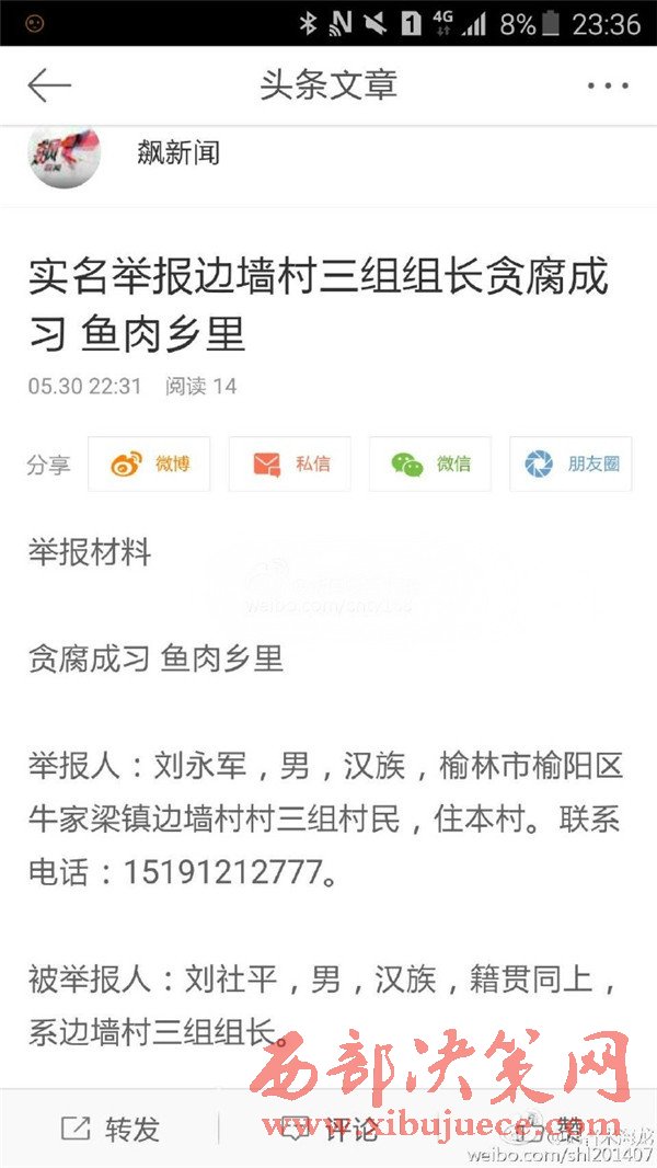 榆陽(yáng)區(qū)牛家梁鎮(zhèn)邊墻村三組組長(zhǎng)被實(shí)名舉報(bào)“貪腐成習(xí)魚肉鄉(xiāng)里”