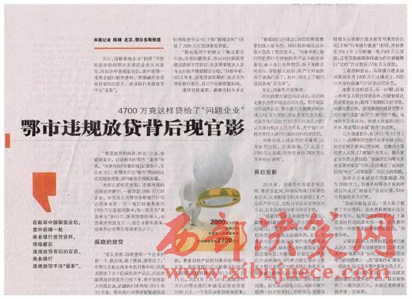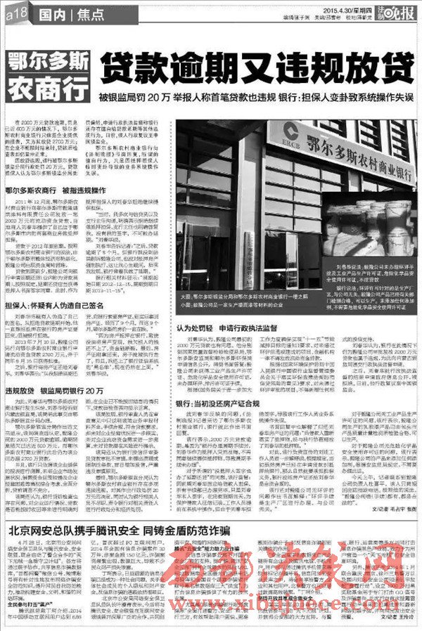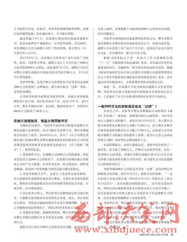 2、在內(nèi)蒙古自治區(qū)紀(jì)委監(jiān)督之下內(nèi)蒙古銀監(jiān)局查出鄂爾多斯農(nóng)商銀行發(fā)放的2000萬、2700萬、2900萬三筆貸款屬于違規(guī)貸款;