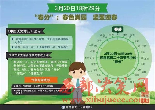 “二氣莫交爭(zhēng),春分雨處行。”3月20日18時(shí)29分我們將迎來農(nóng)歷二十四節(jié)氣中的“春分”,春分這一天,陽(yáng)光直射赤道,晝夜幾乎相等。春分過后,太陽(yáng)的位置逐漸北移,開始晝長(zhǎng)夜短。