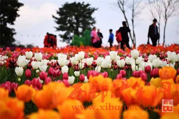 游客在重慶市長(zhǎng)壽湖景區(qū)觀賞盛開的郁金香。