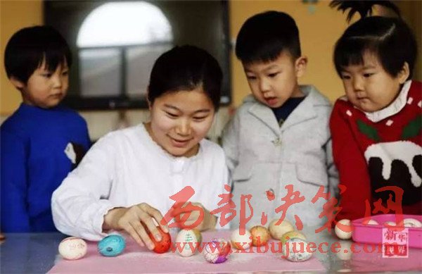河北衡水的一名幼兒園小朋友在手繪彩蛋。