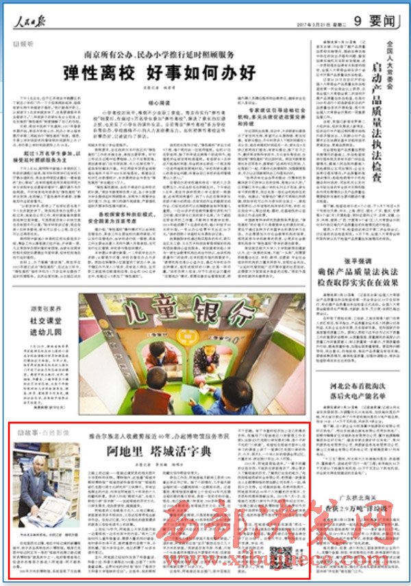 2015年,阿地里面臨退休。“一輩子收藏的這些東西,不能放在家里埋沒了,得讓更多人了解塔城的歷史,了解我們生活的地方。”他找到塔城西部實業(yè)有限公司,把想建一家愛國主義主題博物館的想法跟公司負(fù)責(zé)人一說,得到大力支持。公司提供場地、負(fù)責(zé)沖洗照片,阿地里則將近40年個人收藏的歷史照片、文史資料和剪報奉獻(xiàn)出來。2015年7月1日,在塔城巴克圖口岸對外開放30周年紀(jì)念日時,“絲綢之路邊境貿(mào)易博物館”正式免費對外開放。不到兩年時間,已經(jīng)有3萬多人次前來參觀過,他的科普圖書館也有了100多名固定的讀者。