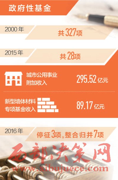 經(jīng)過幾輪清理規(guī)范后,到2015年,政府性基金已從2000年的327項(xiàng)減少到28項(xiàng)。2016年,國家進(jìn)一步清理收費(fèi)基金,停征價(jià)格調(diào)節(jié)基金等3項(xiàng)政府性基金,整合歸并散裝水泥專項(xiàng)資金等7項(xiàng)政府性基金。特別是針對小微企業(yè),加大了降費(fèi)力度。
