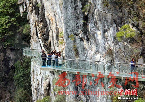 玻璃棧道建在崖壁上最高懸空60米