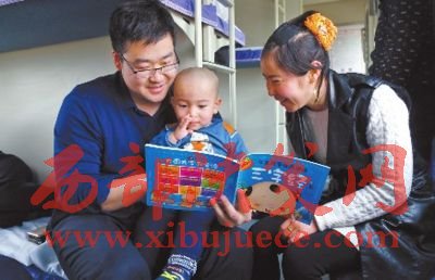 3月25日17時(shí)13分,在“民族團(tuán)結(jié)一家親號(hào)”列車上,茹則妮薩·斯拉吉艾合麥提(右)的兒子在本次列車上認(rèn)識(shí)了新朋友,并獲得了小禮物《三字經(jīng)》。