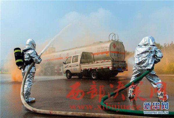 當(dāng)日,山東省菏澤市消防、交通等部門為有效應(yīng)對(duì)?;返缆愤\(yùn)輸突發(fā)事件,提高應(yīng)急救援和協(xié)調(diào)能力,聯(lián)合開(kāi)展?;愤\(yùn)輸企業(yè)事故應(yīng)急救援演練,出動(dòng)消防、救護(hù)等車輛10余臺(tái),近百人參加演練。