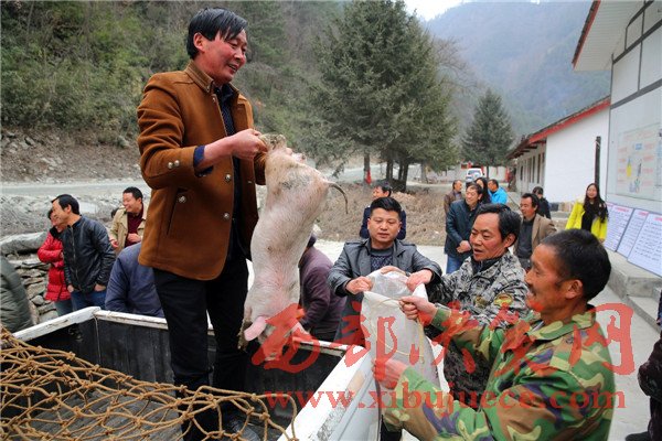 花石村的貧困戶正在領(lǐng)取免費(fèi)豬仔