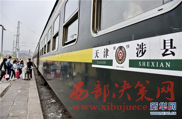 4月15日,旅客在涉縣火車站登上4482次列車。當(dāng)日,北京鐵路局河北涉縣至天津間的4482次“綠皮車”開始最后一次“旅行”。從4月16日起,全國鐵路實(shí)施新的列車運(yùn)行圖,此次列車將升級更換為快速空調(diào)列車,運(yùn)營多年的該線路綠皮火車將告別鐵路舞臺。