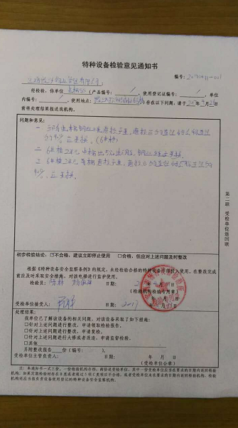 經(jīng)過特檢所現(xiàn)場檢驗(yàn),發(fā)現(xiàn)三部電梯鋼絲繩磨損嚴(yán)重,6號(hào)樓2單元中梯、北梯鋼絲均出現(xiàn)斷股,現(xiàn)場建議更換鋼絲繩,后出具特種設(shè)備檢驗(yàn)意見通知書,對(duì)于檢查出的問題要求立即停止使用。