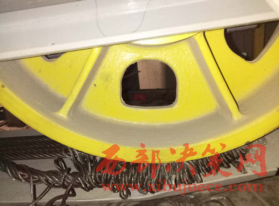 4月14日,西部大開發(fā)工作人員來到凱躍歐洲城,見到凱躍物業(yè)的尹經(jīng)理,說明來意后,尹經(jīng)理說,6號(hào)樓確實(shí)有五部電梯,其中有三部電梯在每月的電梯安檢時(shí)發(fā)現(xiàn)鋼絲繩有安全隱患,其中一部電梯鋼絲部分開叉,已經(jīng)絞到滑輪下面,如果繼續(xù)使用,會(huì)有安全問題。所以物業(yè)公司3月份就找到寶雞市特種設(shè)備檢驗(yàn)所(以下簡稱特檢所),要求現(xiàn)場檢查電梯到底是否能安全,能否繼續(xù)使用。