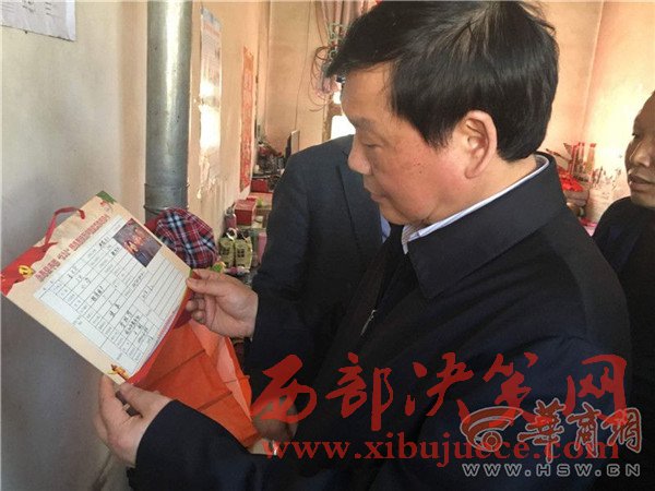 婁勤儉接著問他,家里的開銷主要在什么地方。得知是供孩子上學和給剛?cè)ナ?0多天的老母親治病后,又問:“有困難知道不知道找誰?”葉偉鋒說:“找干部”。婁勤儉進一步追問:“你家的幫扶干部是誰?常來嗎?你能不能叫上名字?”葉偉鋒有些不好意思地說:“我只能記住姓啥。”他想了想找到貼在墻上的一張紙,是“永壽縣干部‘532’精準幫扶萬戶脫貧工作明白卡”,上面記錄著幫扶干部龐阿萌的電話。