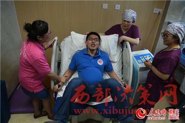 “??!疼死啦!”“快,暫停一下,暫停一下!……生孩子到底有多痛?在母親節(jié)來(lái)臨之際,重慶婦幼保健院邀請(qǐng)10對(duì)家庭的準(zhǔn)爸爸體驗(yàn)分娩疼痛,用感同身受致敬母親節(jié)。在現(xiàn)場(chǎng),準(zhǔn)爸爸們通過分娩疼痛體驗(yàn)儀體驗(yàn)1級(jí)到10級(jí)疼痛,這個(gè)過程雖然只有兩三分鐘,他們?cè)谧畛蹼A段還故作淡定,而在疼痛高潮來(lái)臨時(shí)已是緊閉雙眼、面部扭曲、嗷嗷直叫。還有幾位準(zhǔn)爸爸,在體驗(yàn)到8級(jí)時(shí),就已經(jīng)雙腿抽筋,不得不示意挑戰(zhàn)失敗。參加完體驗(yàn)的“孕爸”們紛紛感慨女人生孩子不易,會(huì)更加感恩母親的生育之痛,更加關(guān)心疼愛老婆。