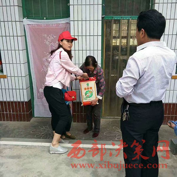 在進入第三戶小丹家中后,師經理為小丹拿出一件新裙子,小女孩看到后欣喜若狂,她沒想到的是,那天她只說想要一個書包,幾本生字本和鉛筆,今天叔叔阿姨不光滿足了這些愿望還給她帶來紅色裙子,給她家?guī)砻?,油,還有一個大西瓜。還有一個好消息就是人壽鳳翔支公司愿意為小丹媽媽提供一個就業(yè)崗位,幫她度過困境.