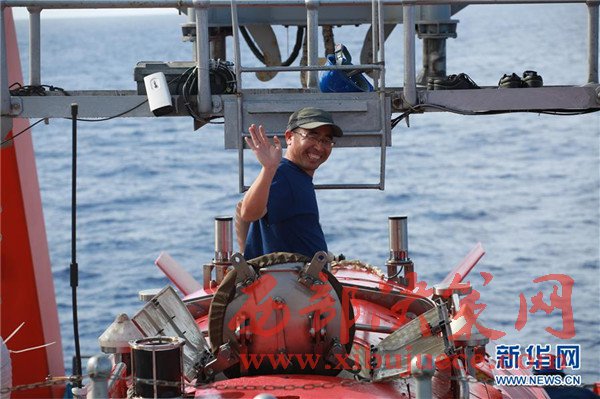 5月23日,新華社記者劉詩平走出“蛟龍”號載人艙。
