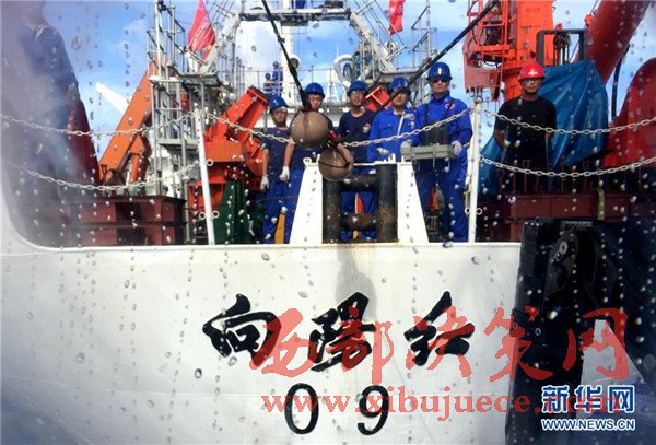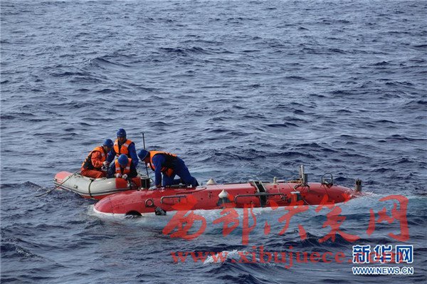5月23日,“蛟龍”號完成下潛準備回到“向陽紅09”科學(xué)考察船上。