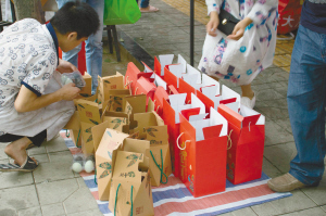 馬鞍東路“粽子江湖”的歷史大致要追溯到上世紀80年代。1980年,居住在馬鞍東路的李太婆,把自己包的粽子拿到院壩門口和附近的曹家巷農(nóng)貿(mào)市場賣,受到她的啟發(fā),“馬婆婆”周啟玉(隨夫姓,下同)拉著“梅婆婆”葉新芳和“任婆婆”張興碧籌劃起了粽子生意。那年開始,端午時節(jié),成都馬鞍東路的“婆婆粽”漸漸名聲在外。如今的馬鞍東路,到端午節(jié)前半個月就熱鬧開來。裁縫鋪、火鍋店、面館……臨街的商鋪都在這個時節(jié)改賣粽子。