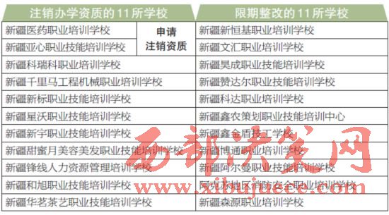 新疆維吾爾自治區(qū)本級民辦職業(yè)培訓學校中11所被注銷了辦學資質,如果您要參加職業(yè)培訓,選擇培訓機構的時候記得要擦亮眼。