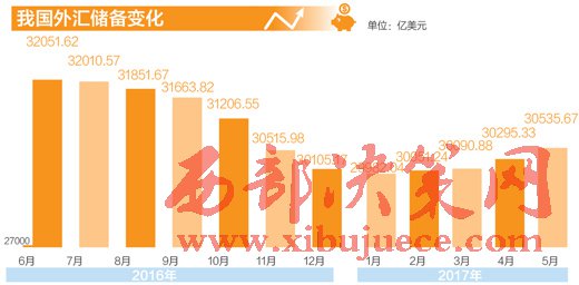 中國(guó)人民銀行最新公布的數(shù)據(jù)顯示,5月末,我國(guó)外匯儲(chǔ)備規(guī)模為30536億美元,較4月末小幅上升240億美元,增幅0.8%,連續(xù)第四個(gè)月出現(xiàn)回升。今年1月,外匯儲(chǔ)備跌破3萬(wàn)億美元,此后開始連續(xù)回升。
