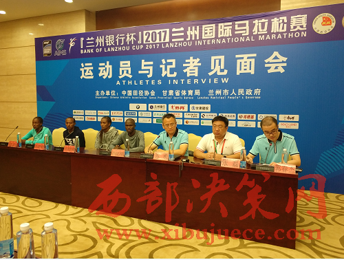 西部決策網(wǎng)-西部大開發(fā)訊(杜杰 帥華鋒)6月9日14時,2017蘭州國際馬拉松賽運動員與記者見面會在甘肅大劇院新聞發(fā)布廳舉行。