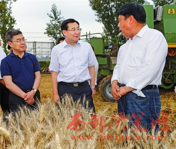 6月11日,省長(zhǎng)胡和平在西安市長(zhǎng)安區(qū)檢查“三夏”工作。(記者母家亮攝)