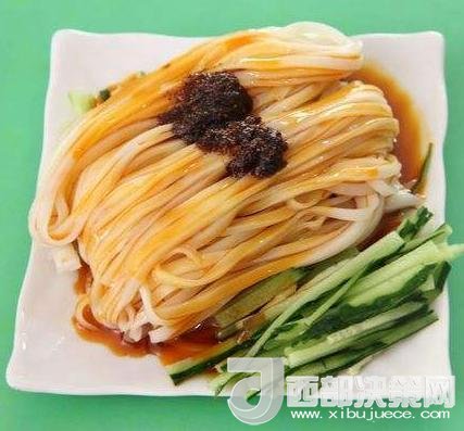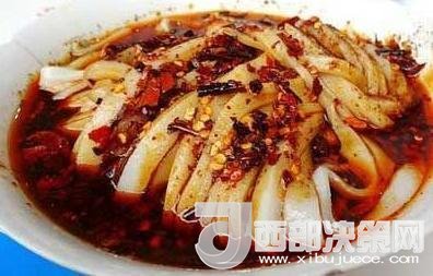 面皮與菜豆腐是漢中人最喜歡的早餐。將大米浸泡、磨漿,加水調(diào)制,蒸成薄片,待冷卻后切成細(xì)條。面皮色白,具有嫩、細(xì)、柔、韌、香等特點。輔以豆芽、菠菜、胡蘿卜絲、芝麻醬、辣椒油、大蒜汁或生姜汁,芥茉、五香粉、精鹽等調(diào)料,涼拌后紅綠相映、黃白互襯、色澤鮮亮,食之爽口,氣味芳香,風(fēng)味獨特。