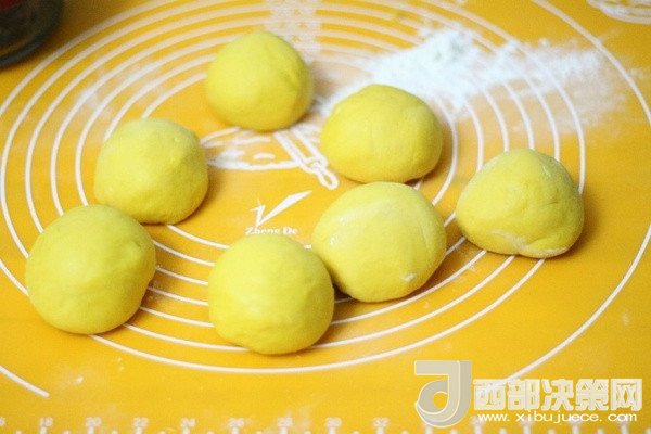 4、發(fā)酵的面團再次揉光滑,平均分成7個小面團。