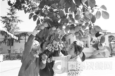 我們幼兒園面積大、歷史久,更可貴的是園中百余棵大樹郁郁蔥蔥。這里春日桃李芬芳,夏日楊柳依依,秋日石榴掛滿枝頭,冬日白雪落在柿子上,一處處皆是風(fēng)景。記得南京師范大學(xué)虞永平教授來我園參觀后,對冬季掛在樹上紅彤彤的柿子特別感興趣,覺得這是北方特有的景色,便問道:“柿子樹有幾種?。糠謩e什么時候長果?果實(shí)什么時間可以摘呢?”說起來慚愧,雖然園中的柿子樹伴隨我從青蔥歲月到不惑年華,我卻不曾認(rèn)真仔細(xì)地觀察過這柿子樹,只是記得后勤老師一直念叨:“柿子樹寓意事事平安,是北方人對平安、幸福美好日子的一種期待。”