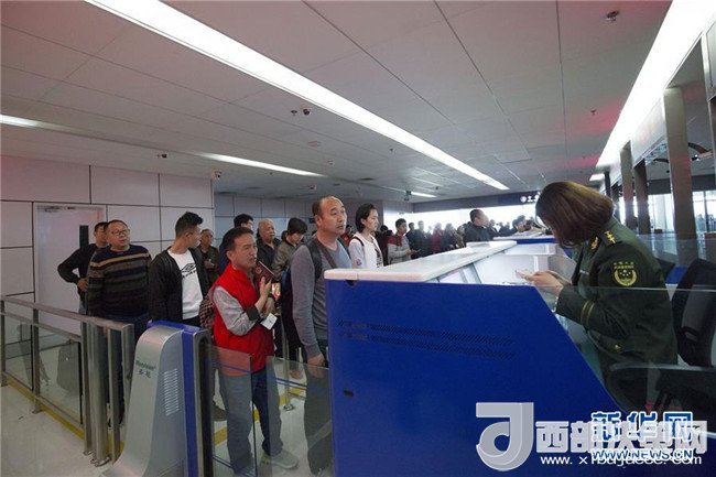 12月27日,在寧夏銀川河東國際機場入境邊防檢查站,邊檢工作人員與2017年驗放的第20萬名旅客劉英(中)及其女兒合影留念。截至12月27日,寧夏銀川空港口岸年度出入境旅客流量首次突破20萬人次,較去年同期增長12.5%。目前,銀川空港口岸已開通至阿聯(lián)酋迪拜、泰國曼谷、越南峴港等地的航線。(杜牧文 攝)