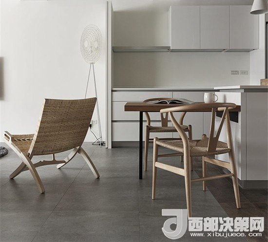 簡(jiǎn)約的木制風(fēng)格中加上一把色調(diào)一致的藤椅,表現(xiàn)出了一種舊時(shí)的情懷。