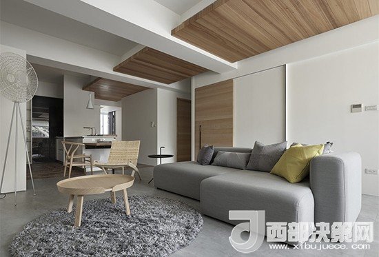 原木和灰色的主線搭配中加入了一只淡黃色抱枕點(diǎn)綴,既不破壞整體的恬淡舒適,又能使空間顯得更加有活力。
