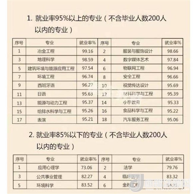 本科部分專業(yè)就業(yè)情況。