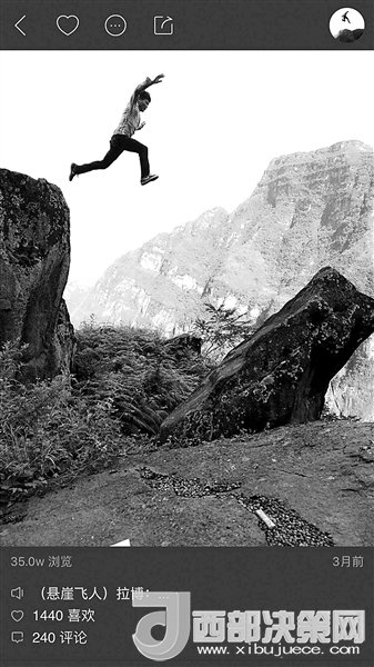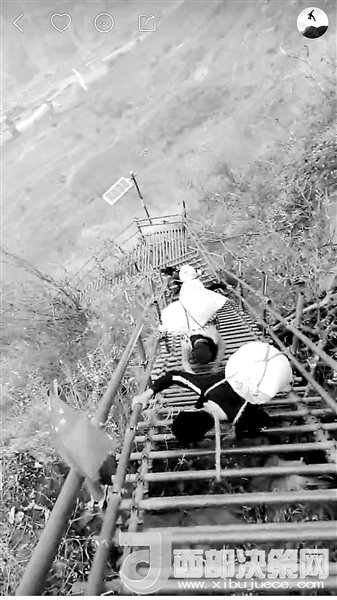 現(xiàn)在,村里24歲的彝族小伙兒拉博已經(jīng)成為首批網(wǎng)紅之一。2016年11月19日,垂直距離約800米、總共約1000級臺階的懸崖村鋼梯工程竣工。拉博就是鋼梯施工隊的一員,在山崖最陡峭的一段,他親手打下了固定的鋼釘。鋼梯完工后,拉博特意去“跑”了一遍,從山頂?shù)缴侥_僅耗時18分鐘,而這段路普通人可能需要一個半小時。從小放羊的拉博習慣了在山間奔跑跳躍,爬天梯、過吊橋、放牛羊這些生活日常,在5個月的時間里為他帶來了12.6萬的粉絲。