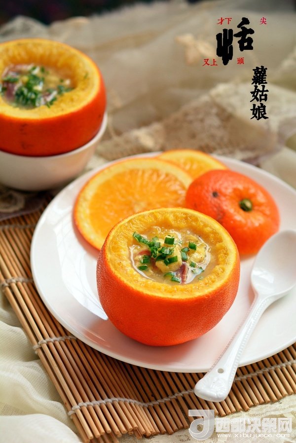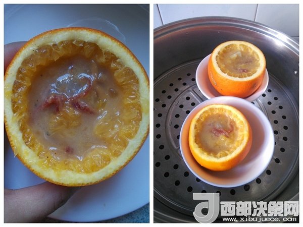 11、放到橙子里面,不要放滿(mǎn),留一點(diǎn)地方;