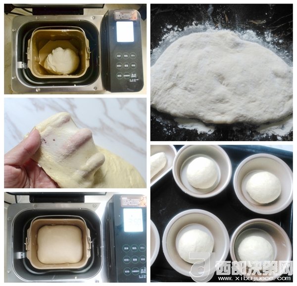 5、分割成6個(gè),大約80克左右一個(gè)放入模具中。