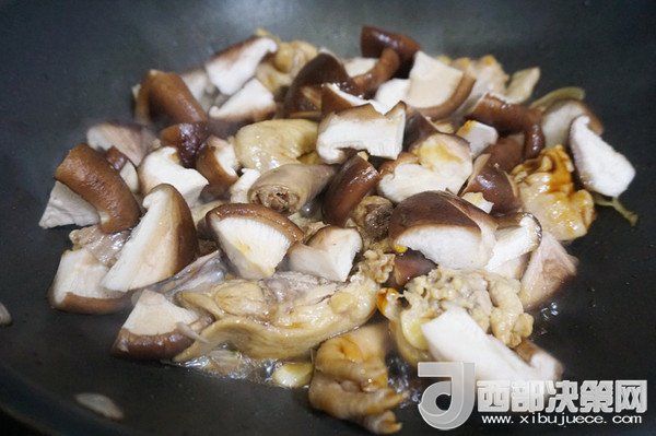 5、再放入香菇塊,加入沒過食材的開水。所有食材都倒入蘇泊爾電壓力鍋的內(nèi)膽中。