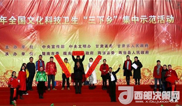 西部決策網(wǎng)-西部大開發(fā)訊(帥華鋒 通訊員 馬存福 漆曉明) 1月19日,2018年全國文化科技衛(wèi)生“三下鄉(xiāng)”集中示范活動(dòng)在兩當(dāng)縣日月廣場舉行。中央文明辦專職副主任夏偉東,副省長李斌,中宣部宣教局局長常勃,中央文明辦一局局長張志勇,省委宣傳部副部長李均,市委書記孫雪濤,市委副書記、市長崔景瑜,省文明辦主任羅鳳存,市委常委、宣傳部長李興華等出席活動(dòng)。