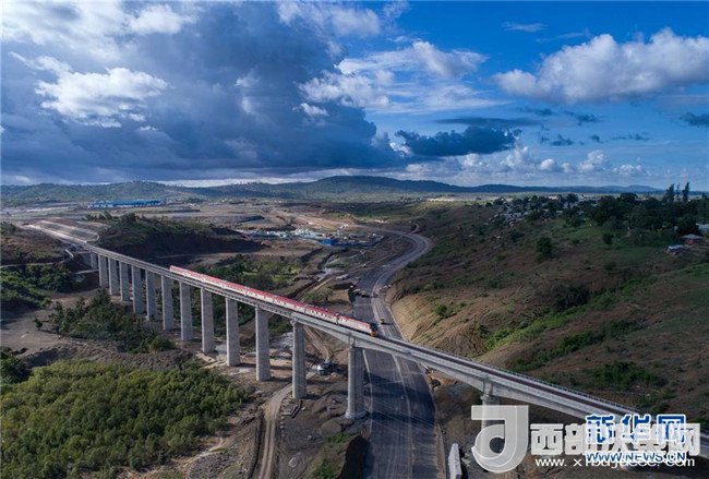 2017年5月12日,列車從肯尼亞蒙內鐵路沿線的馬澤拉斯鐵路大橋上駛過。蒙內鐵路連接肯尼亞首都內羅畢和東非第一大港蒙巴薩,全長約480公里,是一條采用中國標準、中國技術、中國裝備建造的現代化鐵路。記者陳誠攝