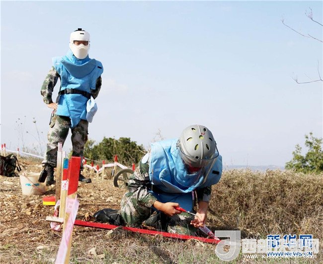 2017年11月8日,在黎巴嫩南部黎以邊境“藍線”附近的掃雷作業(yè)點,中國工兵新作業(yè)手在組長的指導下進行掃雷作業(yè)。2017年10月初,中國維和部隊接到聯合國駐黎巴嫩臨時部隊(聯黎部隊)任務,要求清排一片面積超過1萬平方米、埋有千余枚防步兵地雷的雷場。(董永康攝)
