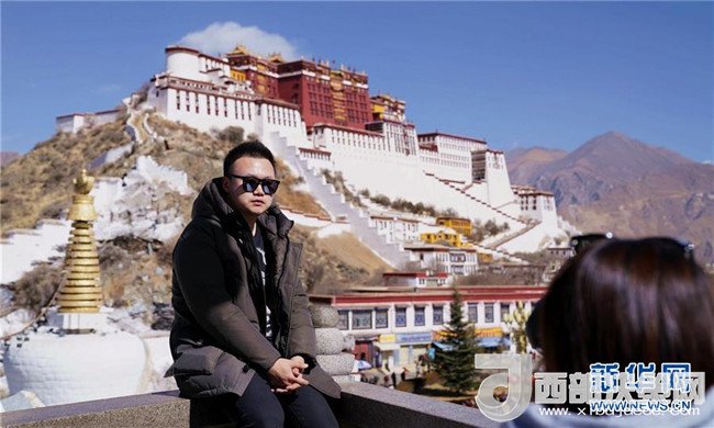 1月31日,一名游客在布達(dá)拉宮觀景臺(tái)上留影。