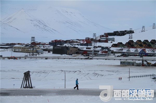 2月25日,在挪威斯瓦爾巴群島首府朗伊爾城,一名行人走在路上。記者梁有昶攝