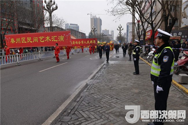 西部決策網-西部大開發(fā)訊 (帥華鋒 通訊員 馬存福 劉冀遠) 2月27日(農歷正月十二)上午,甘肅天水市秦州區(qū)鑼鼓喧天、龍騰獅舞,處處洋溢著歡樂喜慶的節(jié)日氛圍,引得市民紛紛駐足觀看。為保障2018年秦州區(qū)春節(jié)民間藝術匯演活動順利舉行,天水公安交警部門根據轄區(qū)實際,結合歷年活動保障經驗,科學制定勤務,提前向社會發(fā)布出行提示信息?;顒赢斕?,全體執(zhí)勤交通民警及協(xié)管員按時到崗到位,對合作巷十字、藉濱橋十字、重新街北口等路段進行臨時交通管制,指揮車輛分流繞行,引導過往群眾有序觀看。