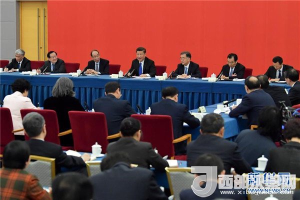 3月4日下午,中共中央總書記、國家主席、中央軍委主席習(xí)近平看望參加全國政協(xié)十三屆一次會議的民盟、致公黨、無黨派人士、僑聯(lián)界委員,并參加聯(lián)組會,聽取意見和建議。中共中央政治局常委、全國政協(xié)十三屆一次會議主席團會議主持人汪洋參加看望和討論。新華社發(fā)(盛佳鵬 攝)