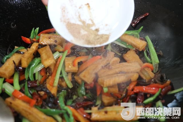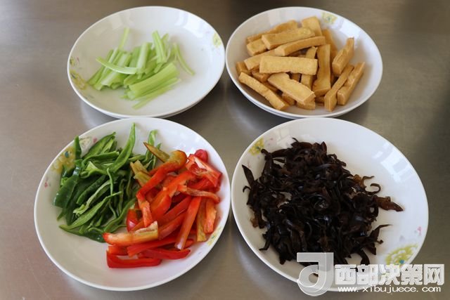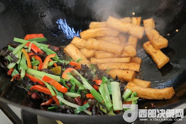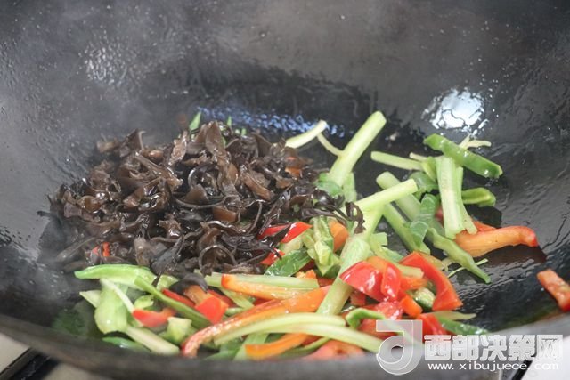 主料:豆腐 230克   西芹 50克   青椒 80克   大辣椒 110克   干辣子 7克   木耳 65克