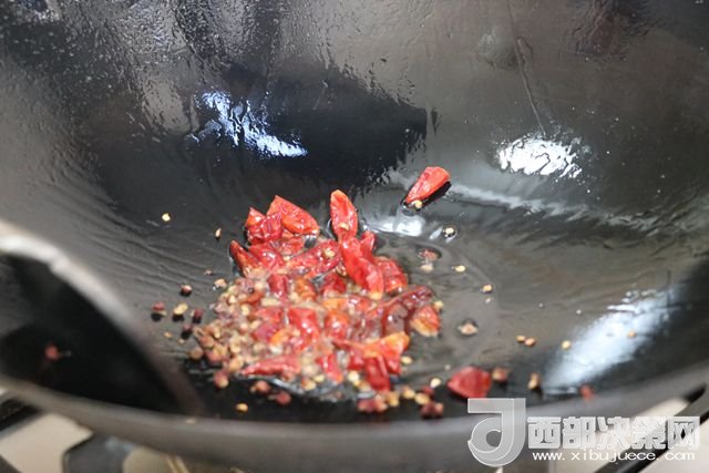 6.少許油翻炒干辣椒和花椒。