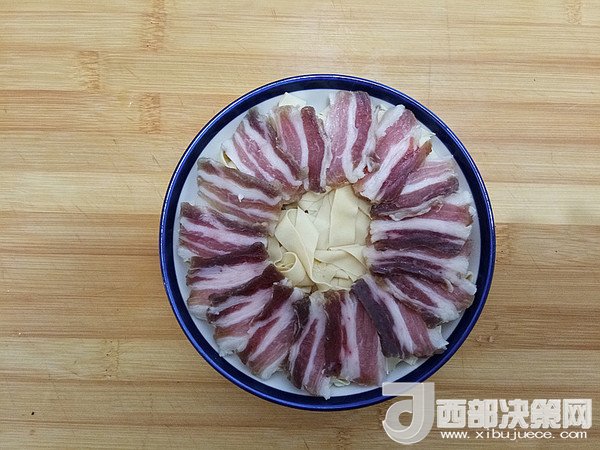 2、蒸制的時候,千張咸肉中可以加入少許水,我沒有加水,蒸出來稍稍有些干。