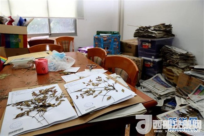 在復(fù)旦大學(xué)鐘揚的工作間里,大量報紙中夾存著他和團隊從各地采集的待整理植物標(biāo)本(2018年1月24日攝)。新華社記者 劉穎 攝