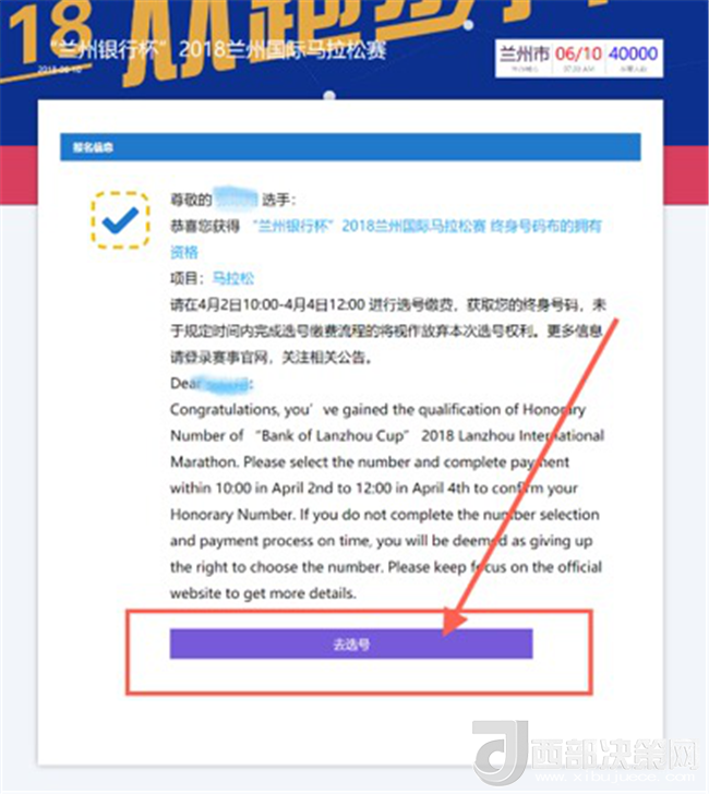 西部決策網(wǎng)—西部大開發(fā)訊(杜杰 帥華鋒)“蘭州銀行杯”2018蘭州國際馬拉松賽預(yù)報名工作已于3月25日15:00截止,現(xiàn)已全面進入資質(zhì)審核階段,在所有成功預(yù)報名的選手中,終身號碼(含歷屆與2018新進)擁有者可于4月3日10:00-4月5日12:00通過官網(wǎng)完成自主選號并繳費;馬拉松項目直通選手(不含組委會特邀及專業(yè)運動員,詳見官網(wǎng)報名須知)也可于4月6日10:00-4月8日12:00完成自主選號并繳費。具體規(guī)則及流程如下: